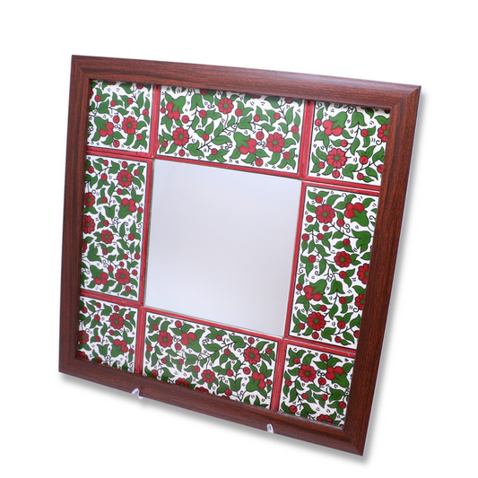 Handmade Ceramic Tile-Framed Wall Mounted Mirror 34x34 cm