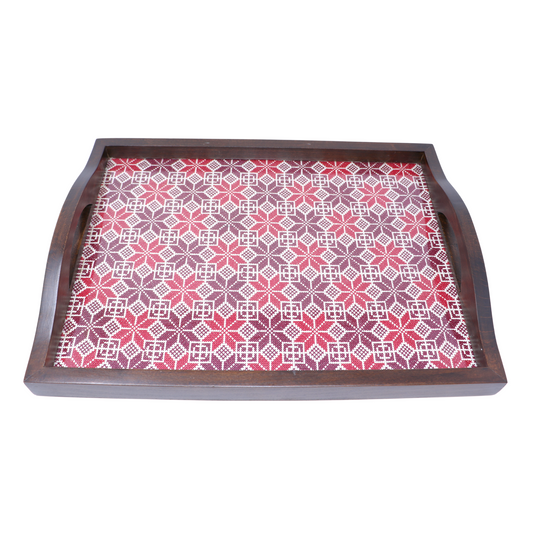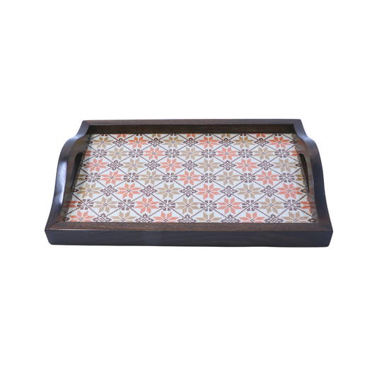 Exquisite Hand-Embroidered Glass-Inlaid Wooden Serving Tray (38x25 cm)