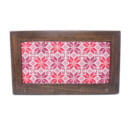 Functional Elegance: Hand-Embroidered Wall-Mount Wooden Key Holder with 4 Hooks (33x19 cm)