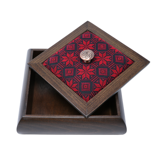 Artistry Unveiled: Hand-Embroidered Wooden Box with Lid (23x23 cm)
