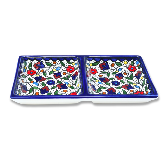 Handmade Ceramic Two-Section Appetizer Plate, 24x12 cm