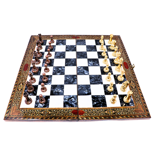 Handmade Wooden Mosaic Chess Board - Folding - Medium - 34 cm