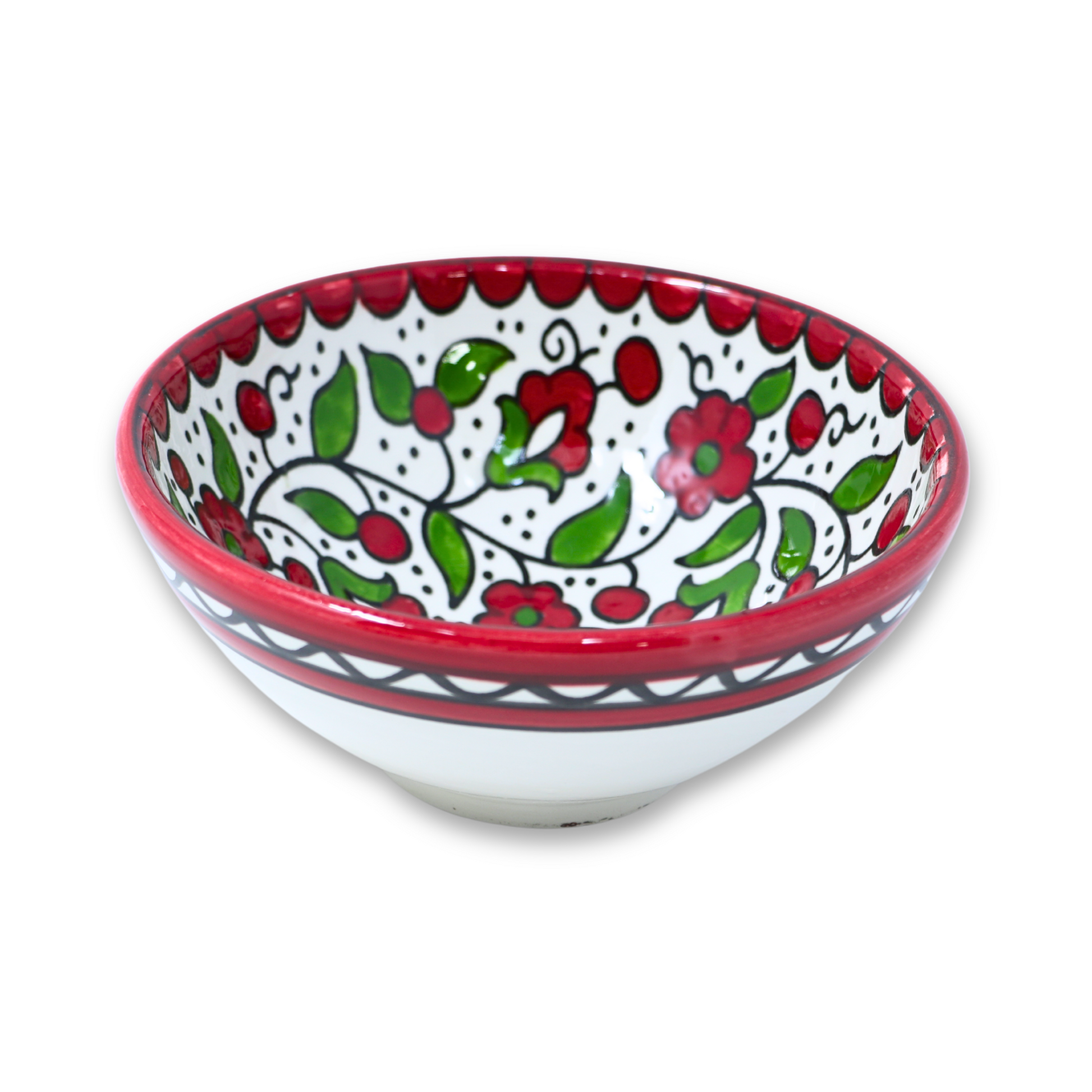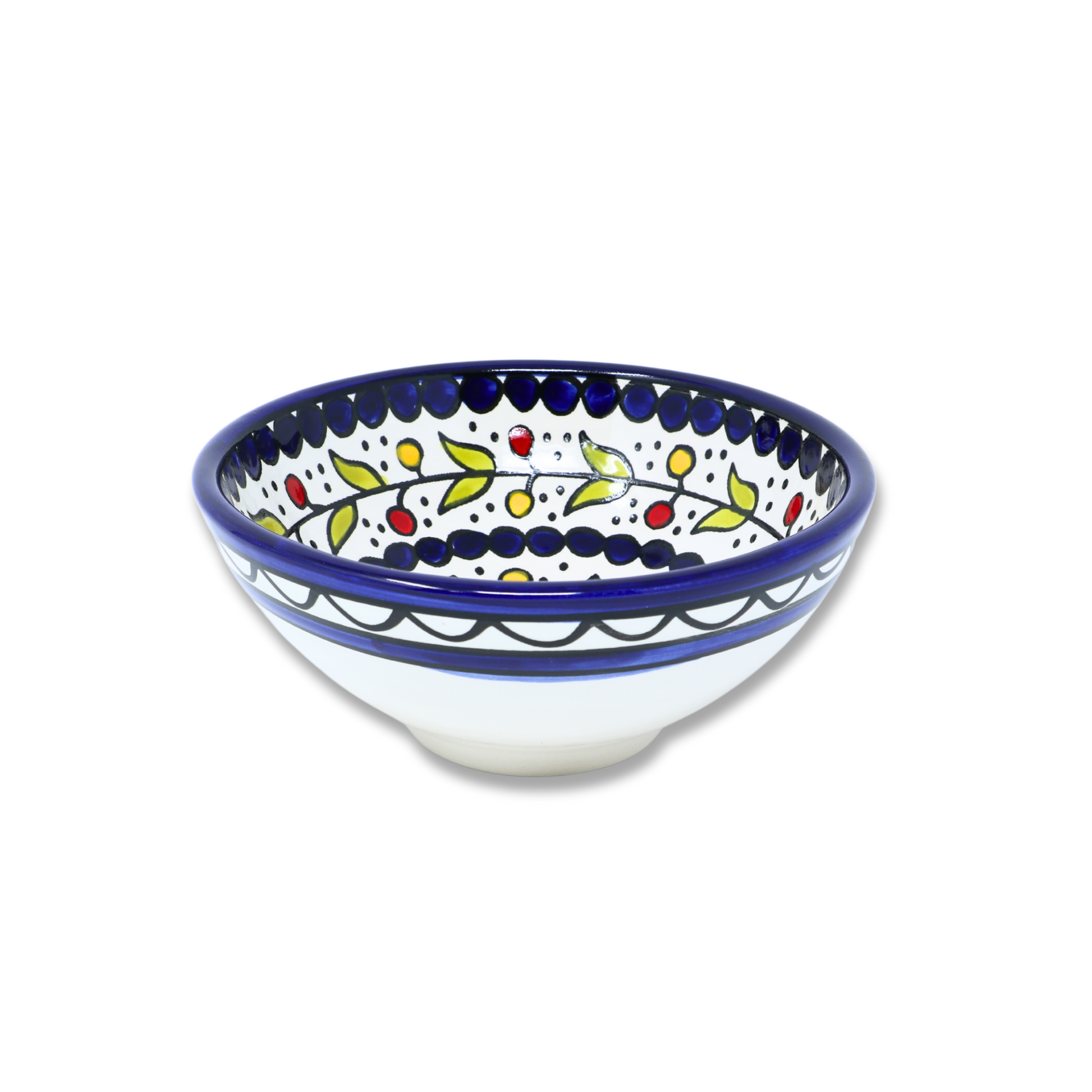 Palestinian Excellence: Every Handmade Ceramic Bowl is a testament to the skilled craftsmanship of Hebron, Palestine. Made with love, it proudly carries the essence of Palestinian artistry. By welcoming this bowl into your home, you're not just acquiring a serving piece; you're inviting a piece of Palestinian culture and history to your table.