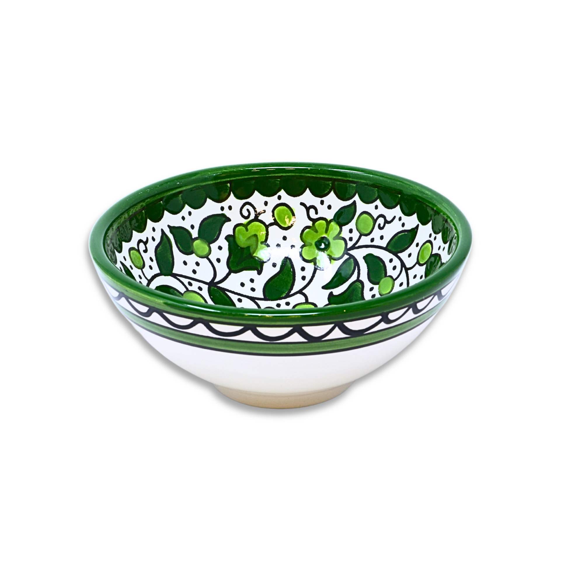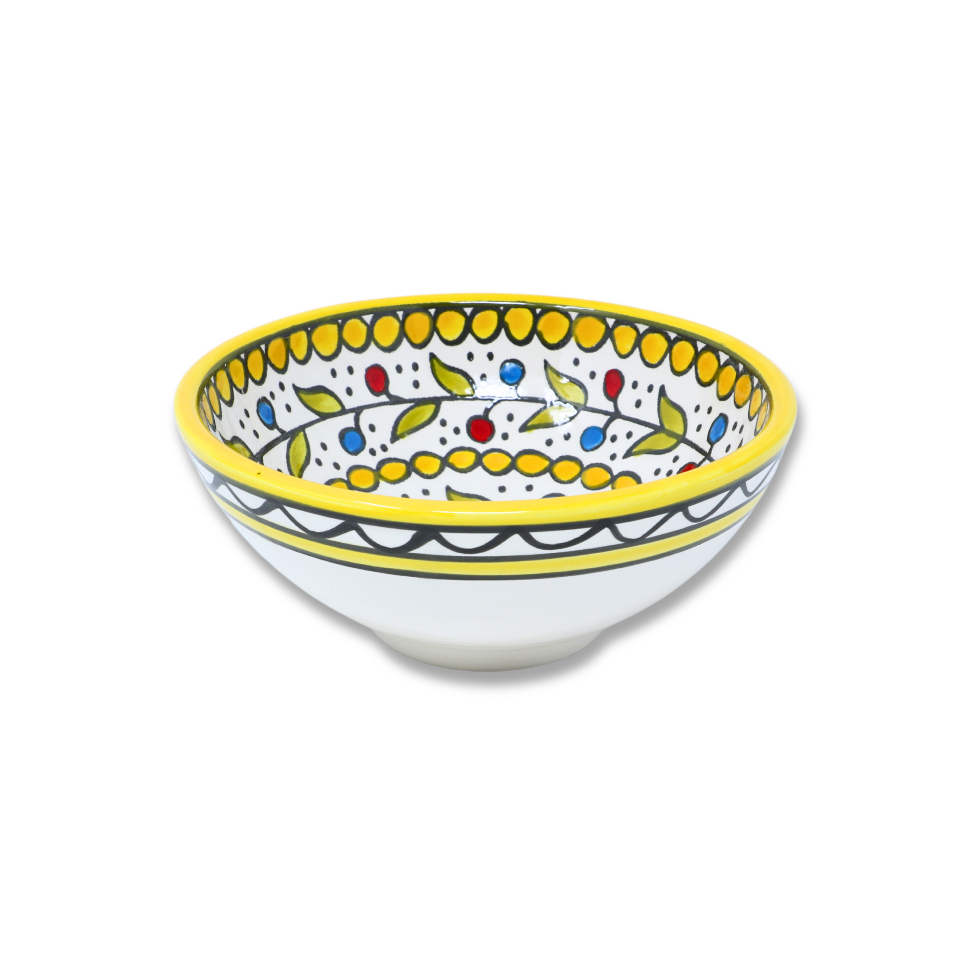 Enhance your dining experience with the Handmade Ceramic Bowl, a delightful piece of functional artistry that carries with it the rich heritage and craftsmanship of Hebron, Palestine. This exquisite bowl boasts dimensions of approximately D15H6 cm (6 x 2.4 inches) and a weight of around 0.7 lb (0.3 kg), seamlessly blending functional beauty with cultural significance.