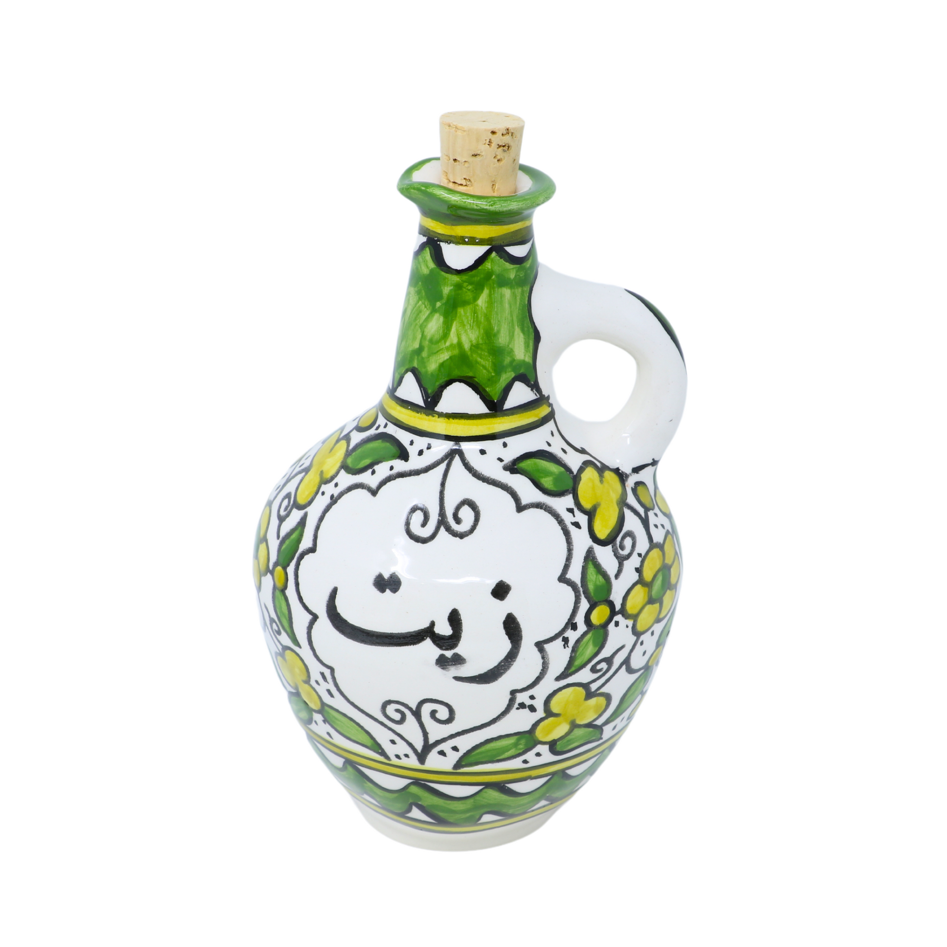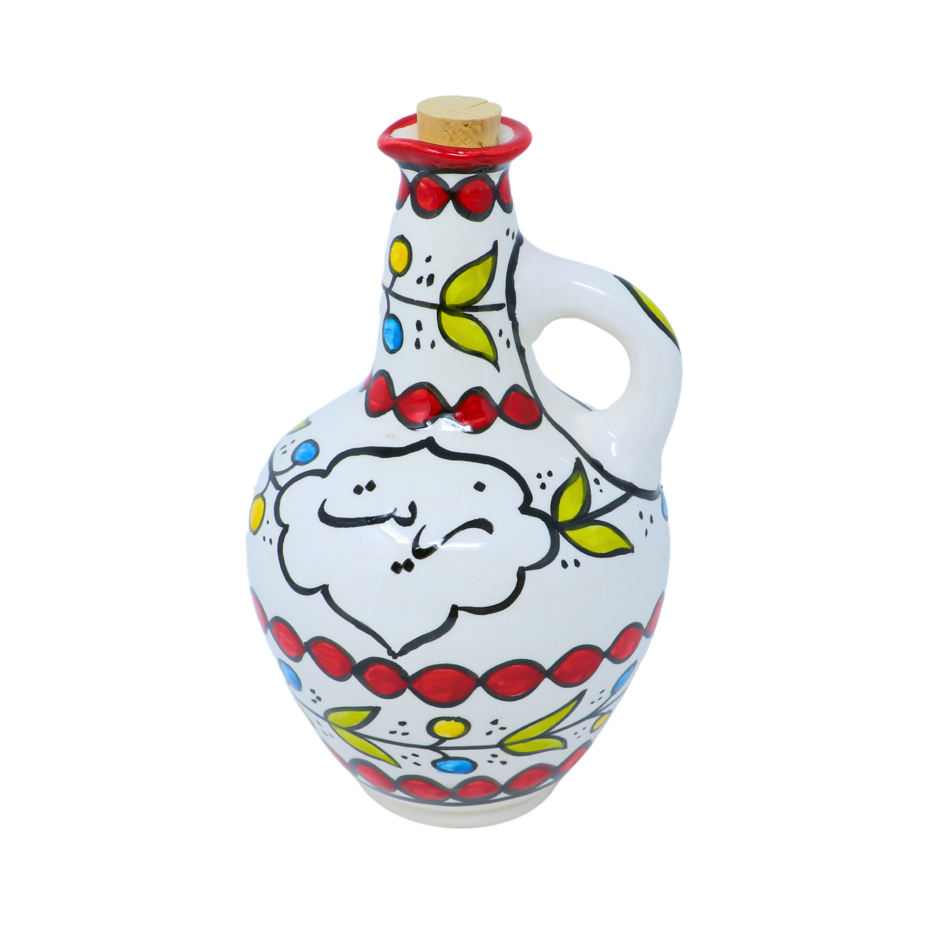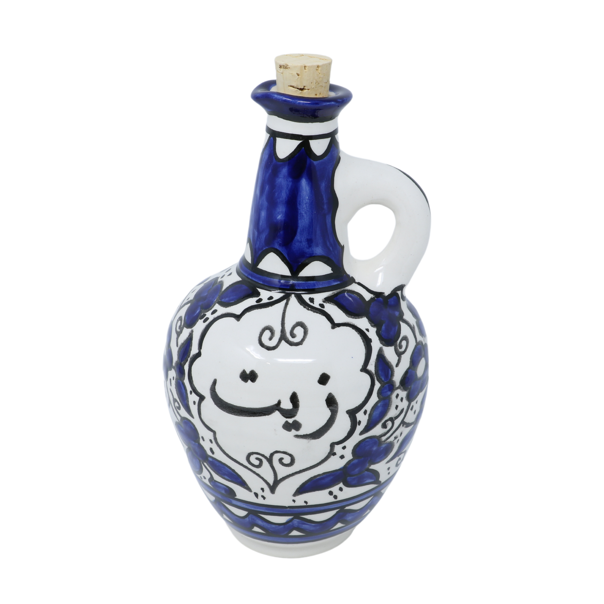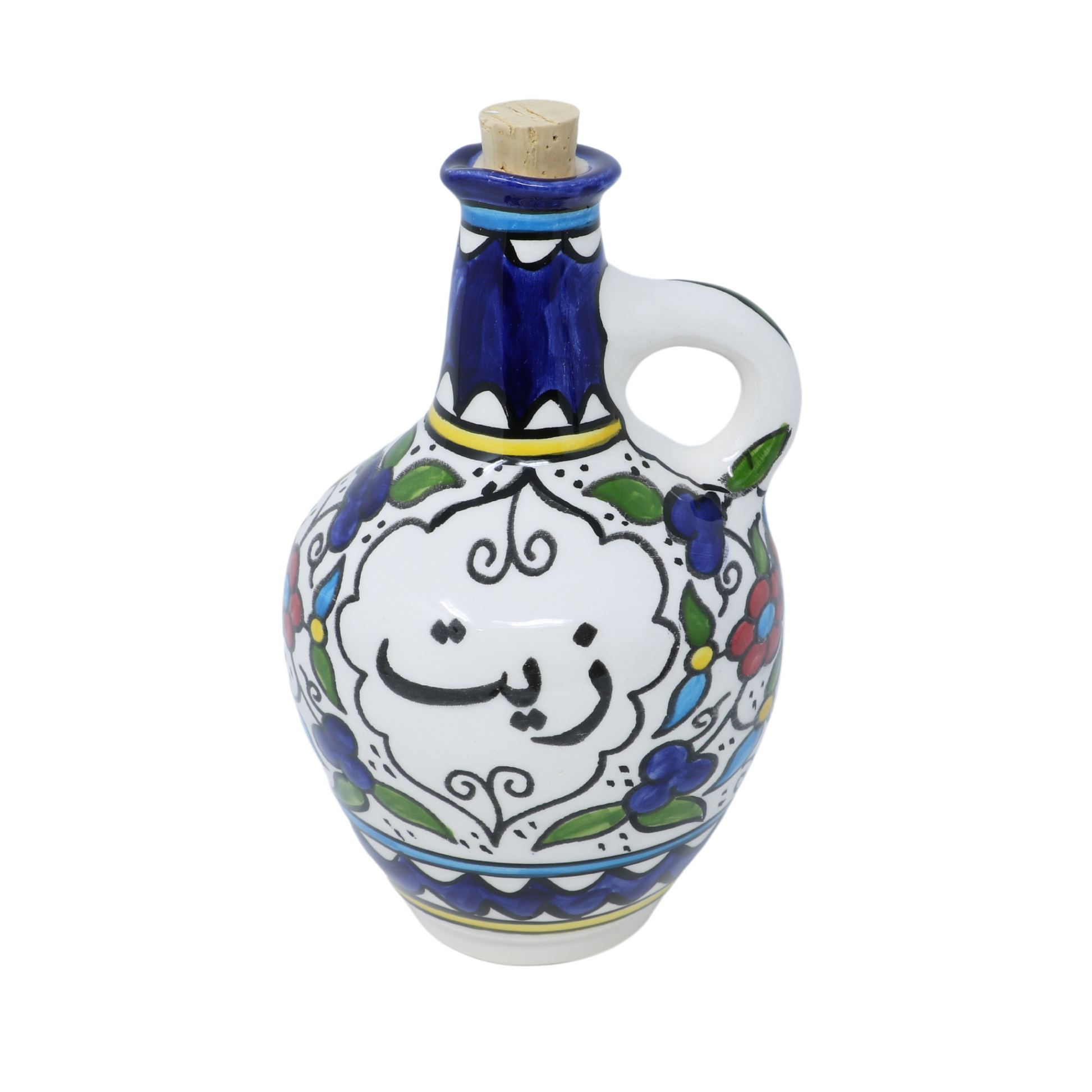 Palestinian Craftsmanship: Immerse yourself in the excellence of Palestinian artisans with this exquisite ceramic olive oil dispenser. Handcrafted in the artisanal workshops of Hebron, Palestine, it pays homage to the region's rich heritage, infusing your culinary moments with the vibrant culture of Palestine.