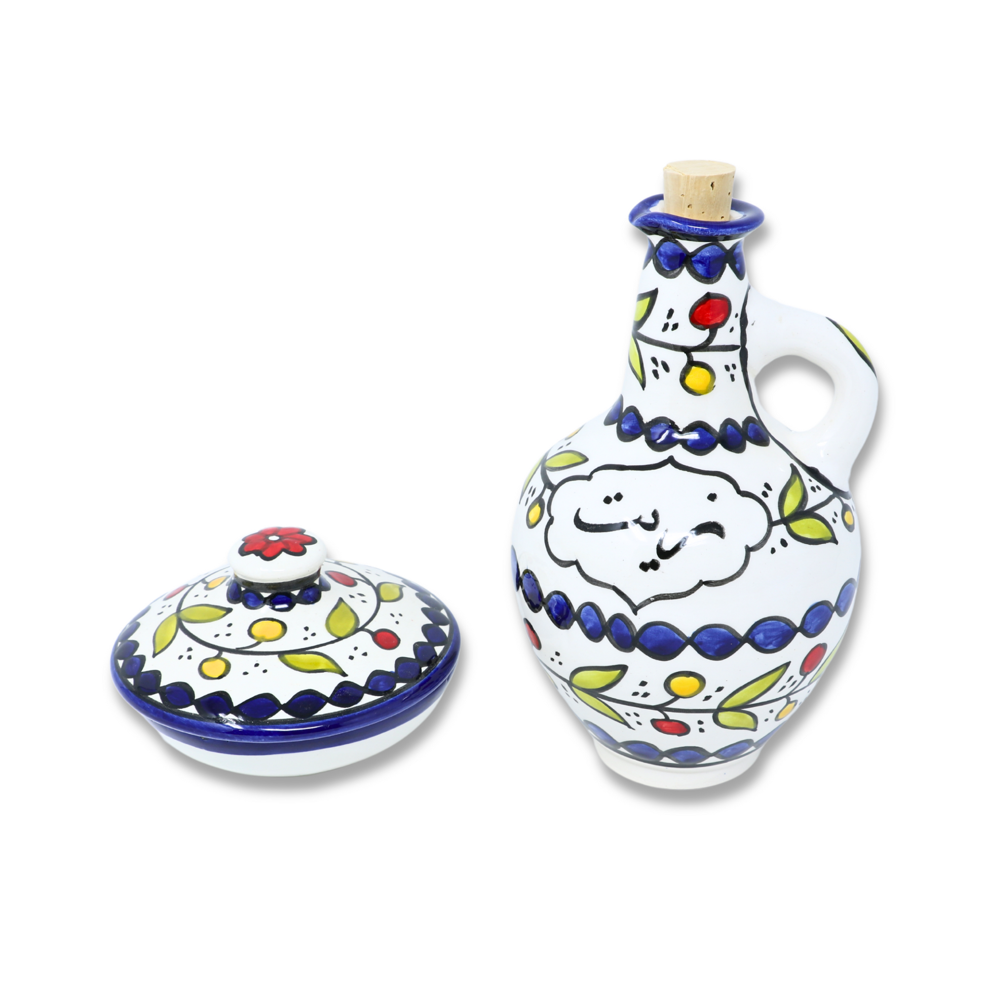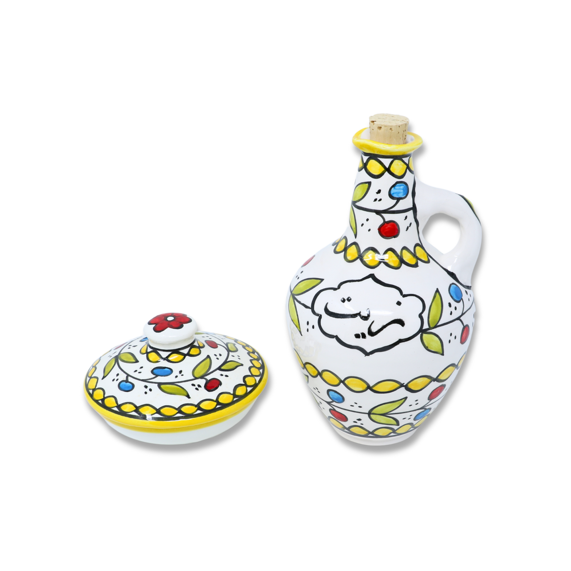 The Handmade Ceramic Olive Oil Dispenser is a fusion of art, culture, and functionality. Elevate your culinary creations by serving your favorite oils and dressings in an appealing and authentic style. Whether you're cooking for yourself or entertaining guests, infuse your kitchen rituals with the charm of Palestine using this extraordinary piece.