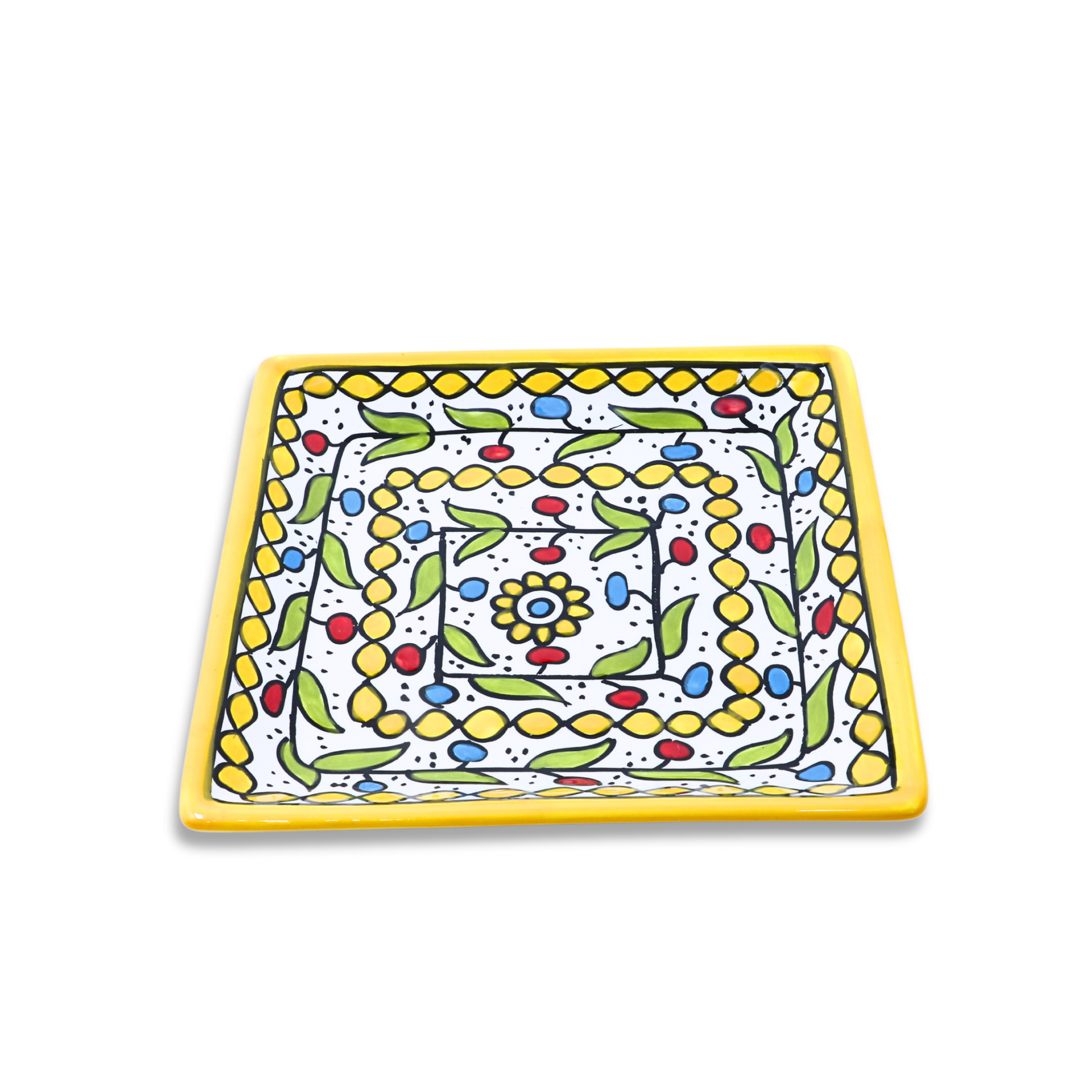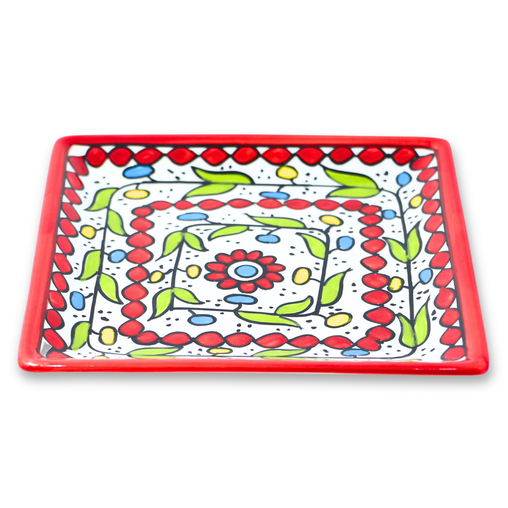 Create Stunning Sets: Combine this square plate with other items from the same collection to curate a harmonious and visually stunning dining set. Mix and match colors and patterns to express your personal style and appreciation for Palestinian craftsmanship.