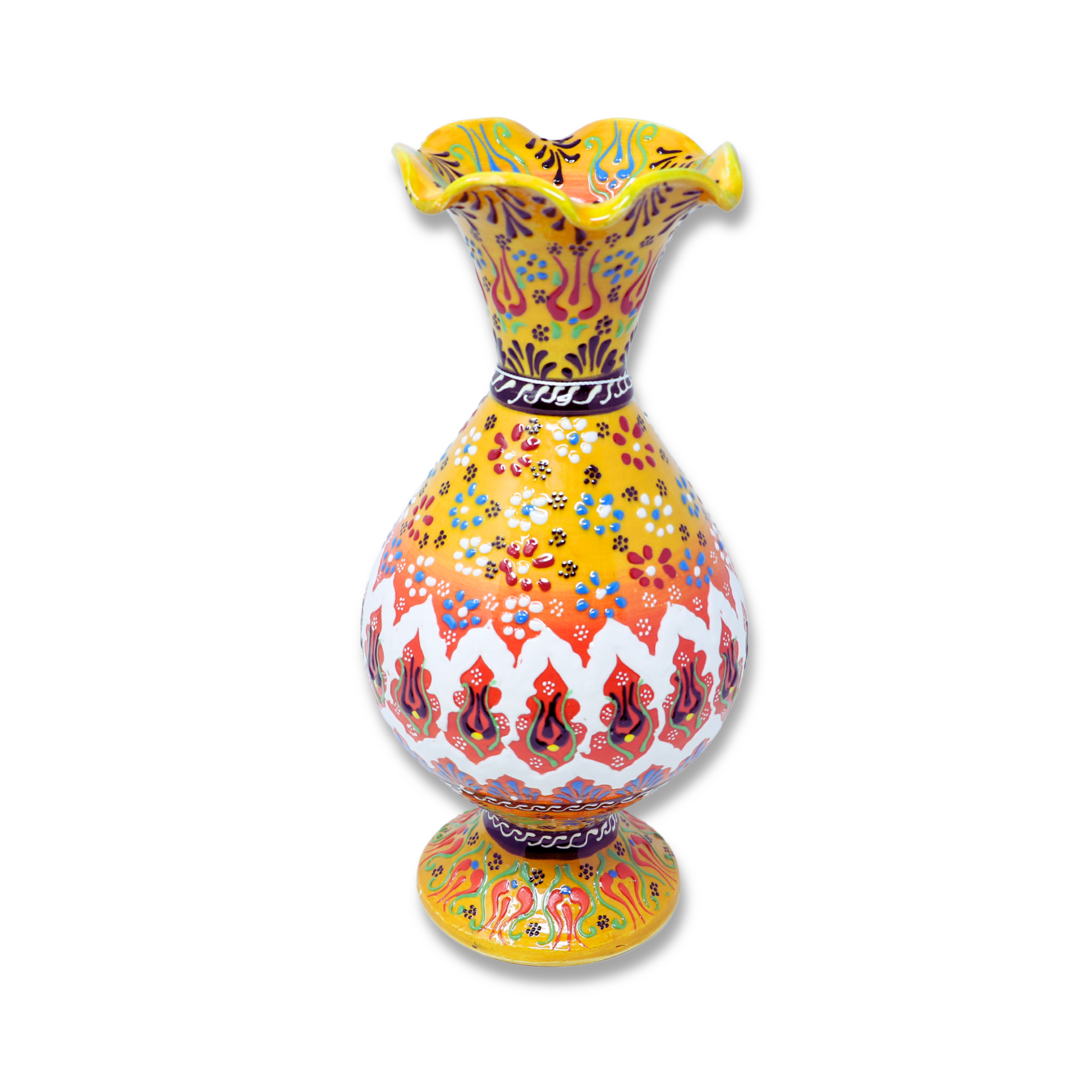 Turkish Artistry: Indulge in the rich cultural heritage of Turkey with this handcrafted ceramic vase. Meticulously shaped and adorned by the skilled hands of Turkish artisans, each piece reflects a commitment to artisanal mastery, transforming every setting into a cultural celebration.